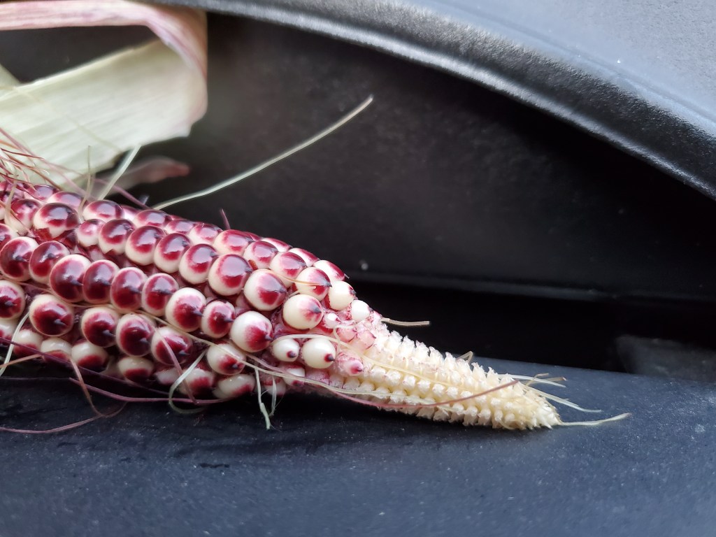 Welcome to the most wonderful time of the year! I figured sharing a couple of pictures of my creepy corn would be a good way to start off this post. Can you imagine peeling back the husk and seeing this staring back at you? Yes, that is real corn I’ve grown in my very own garden. No, no meteors have recently fallen here from space, nor was my garden formerly a burial ground. It’s just. Weird. Corn. And no, it wasn’t advertised as looking like this. It was just supposed to be . . . pretty.